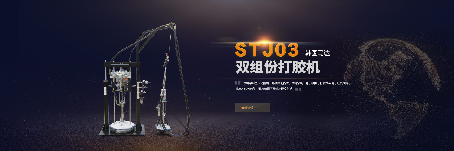 STJ06T型雙組份打膠機(jī)是我公司自行研制生產(chǎn)的一種全氣動打膠機(jī)。這款設(shè)備是專門為中空玻璃打膠設(shè)計(jì)...